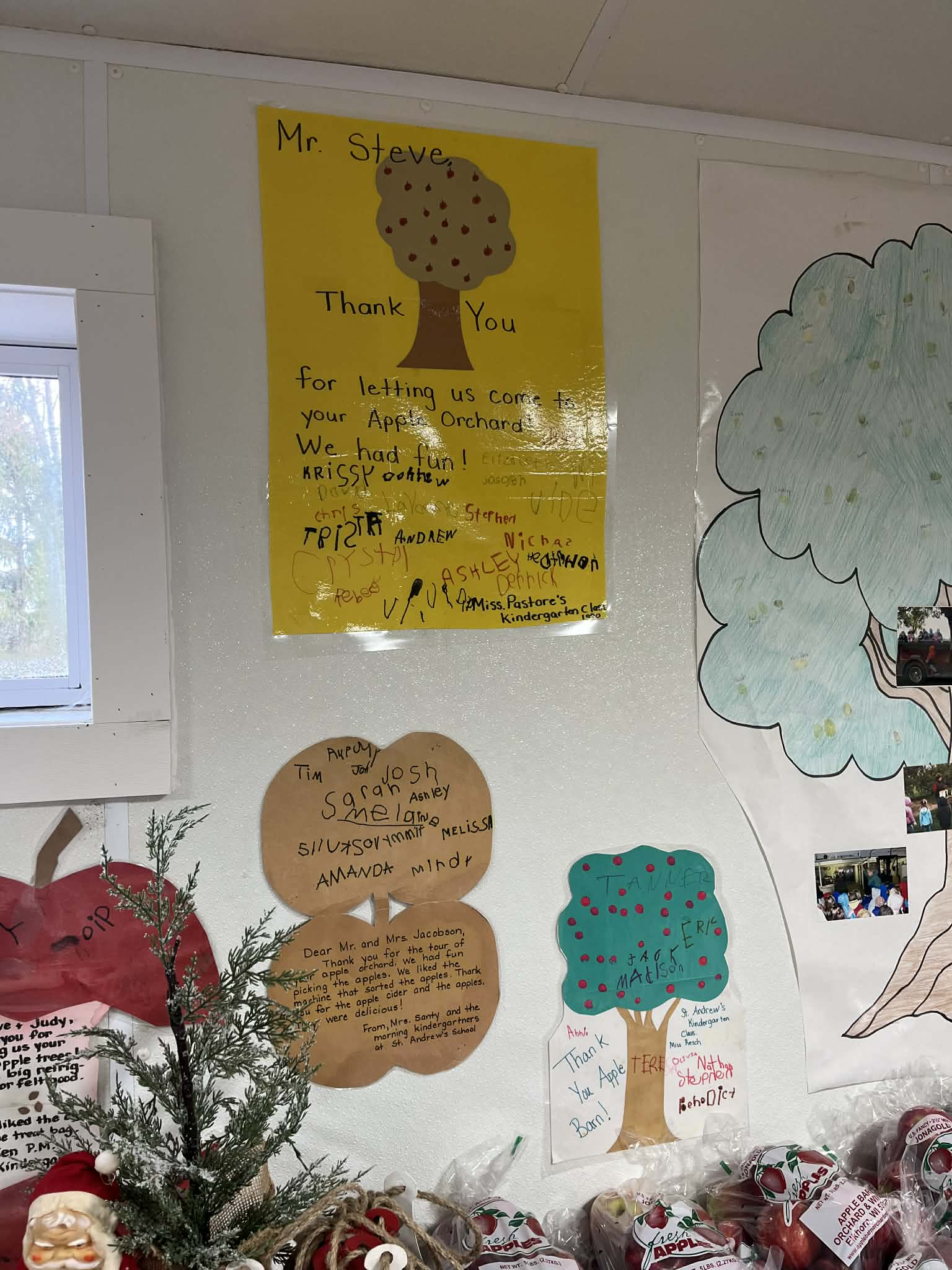 Steve and Judy aren’t just in the apple business, though. They also have hearts for community enrichment. This is made evident by their 40+ years’ worth of thank you letters posted in the walk-in apple chiller. During their busy seasons, so September-October, they offer guided school tours of the Apple Barn. The genuine gratitude expressed in those letters reflect the care, patience, and attention Steve and Judy pour into every visit. It’s clear that these tours aren’t just educational; they’re a beautiful, heartfelt way to give back to the community that has supported them for so long.